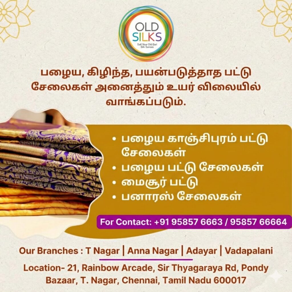 📞 Contact us now: +91 9585766663 – Trusted old silk saree buyers in Adyar, Chennai.