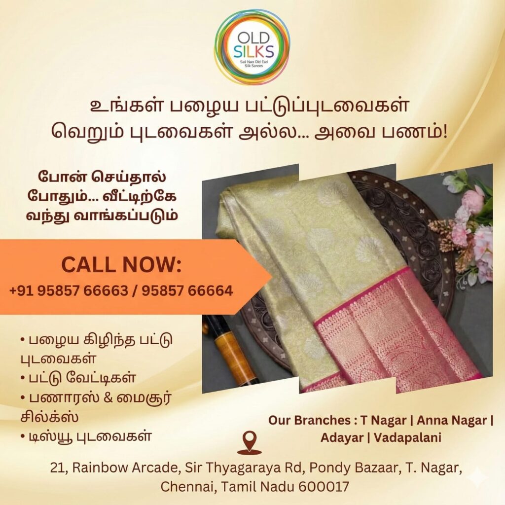 📞 Call +91 95857 66663 – Trusted Old Silk Saree Buyers in Saidapet, Chennai.