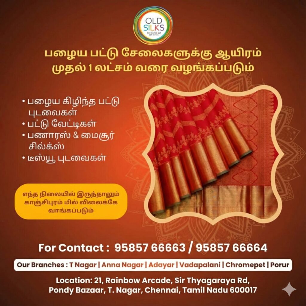 📞 Call +91 9585766663 – Trusted Old Silk Saree Buyers in Thiruvanmiyur, Chennai.
