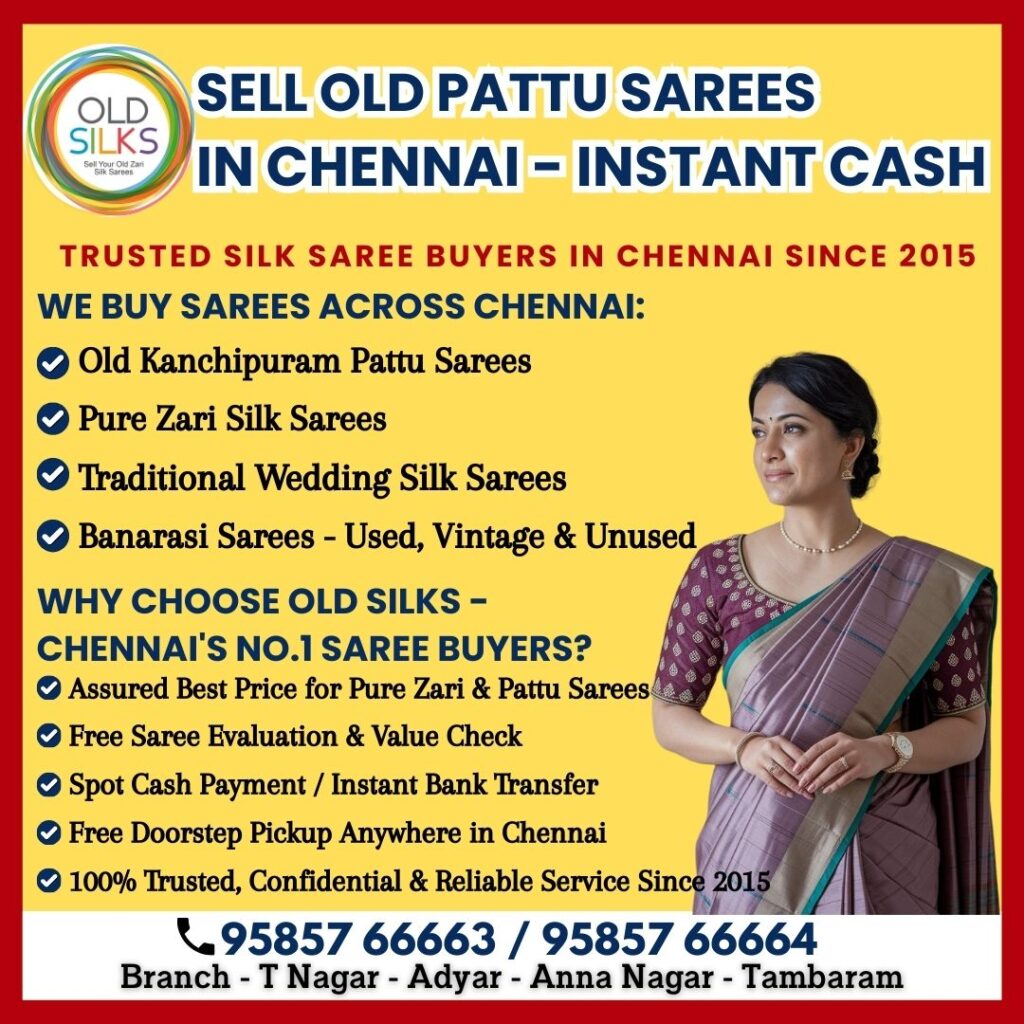 Looking to sell old silk sarees in Pattaravakkam, Chennai? Get the best price with free doorstep pickup and instant cash. Call +91 9585766663 now!